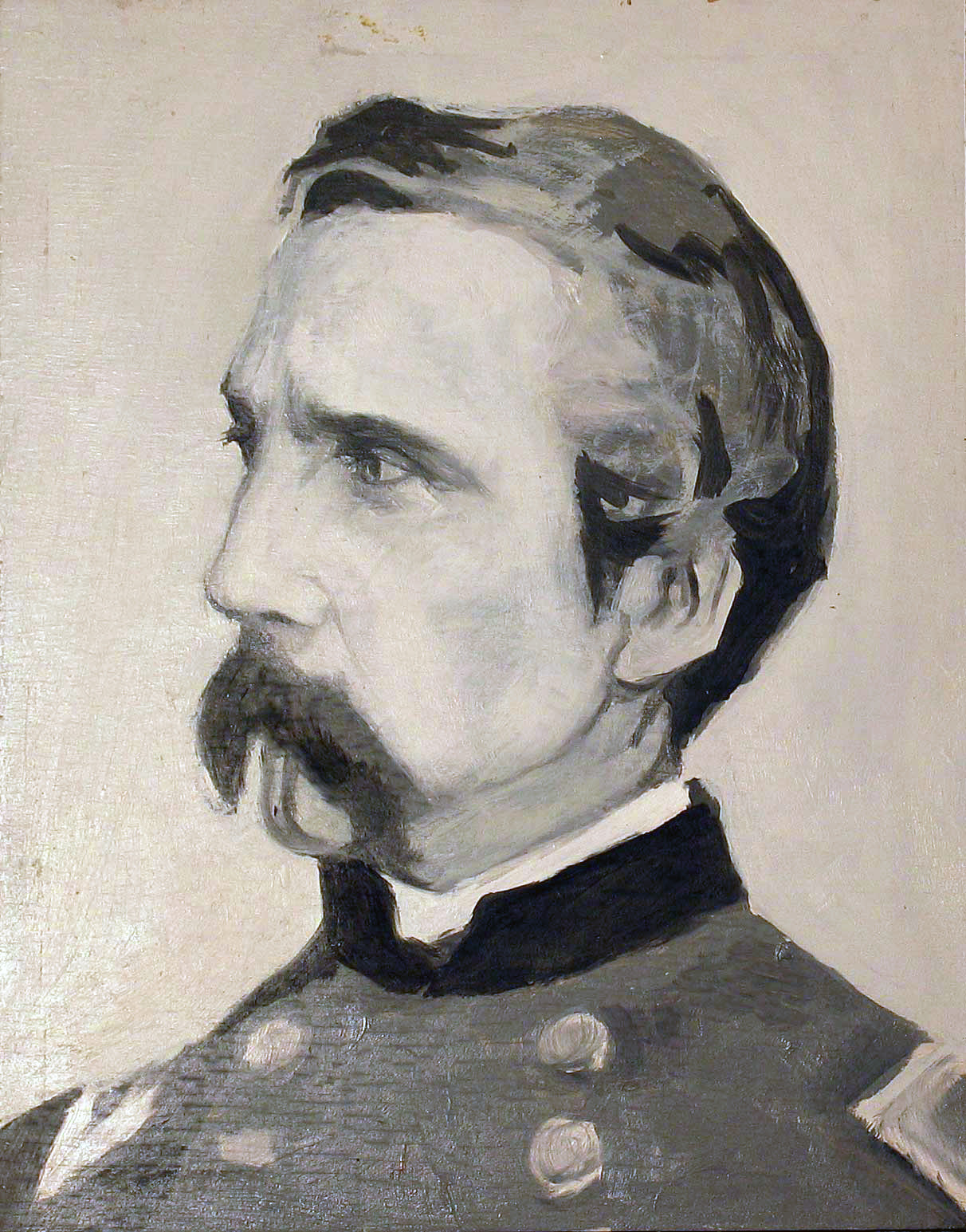 This series was inspired after reading Stephen W. Sears book "Gettysburg" three years ago. Whenever I came across the name of a Union officer who's heroic action during the battle moved me, I looked up there photograph in the on-line picture collection of the Library of Congress. They have some high resolution TIFF files of most of the Union officers. It was fascinating connecting a face with there heroic act. My love of the photographic images of the time and the intersection of painting took over from there and here is the results.